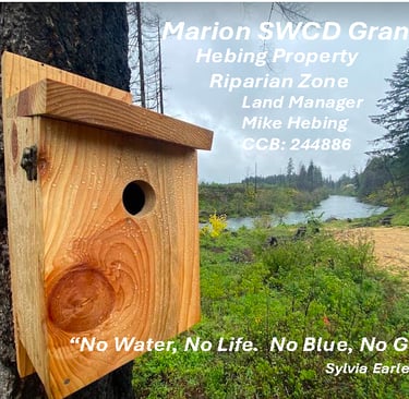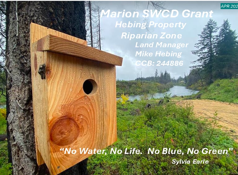 Mike Hebing received a Conservation Assistance Grant and completed a restoration project for his family’s property to remove the woody slash left on site, remove the invasive scotch broom, plant native species, build habitat brush piles and install bird houses (made from salvaged timber from his site) to help recover some of the lost wildlife habitat. Luckily, having professional experience with land clearing and tree work as his job, Mike was able to complete all of the labor himself and count that as his match to receive grant funds