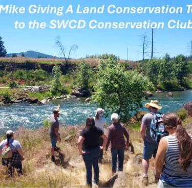 This June, Marion SWCD hosted a Conservation Club event for lifelong learners to join together for a day on the river to hear about riparian restoration management from the landowners themselves. While the river was still flowing high and the native flowers were blooming, we explored a range of riparian restoration practices at a large and a small site along the North Santiam River.